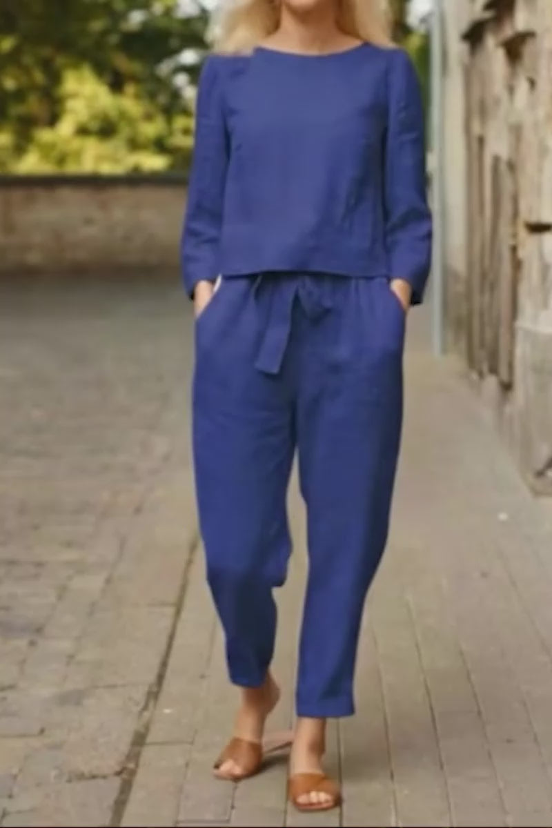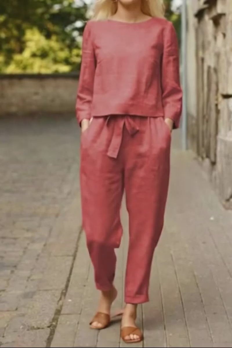 The matching set is ideal for casual outings and semi-formal events when you accessorize with dressier shoes and jewelry.
