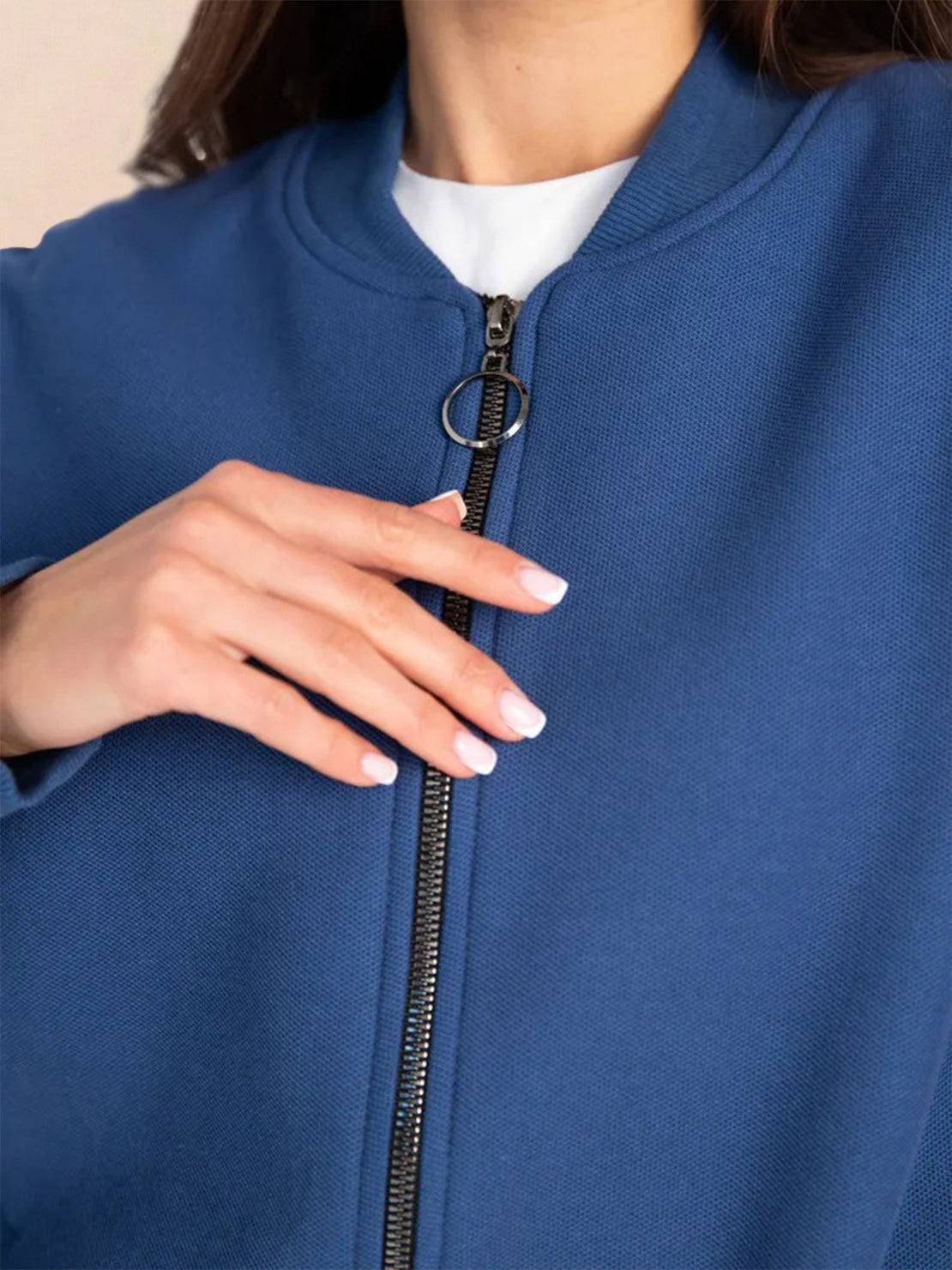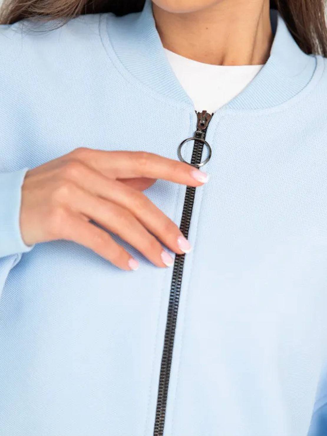 - Zip-front jacket with a relaxed fit