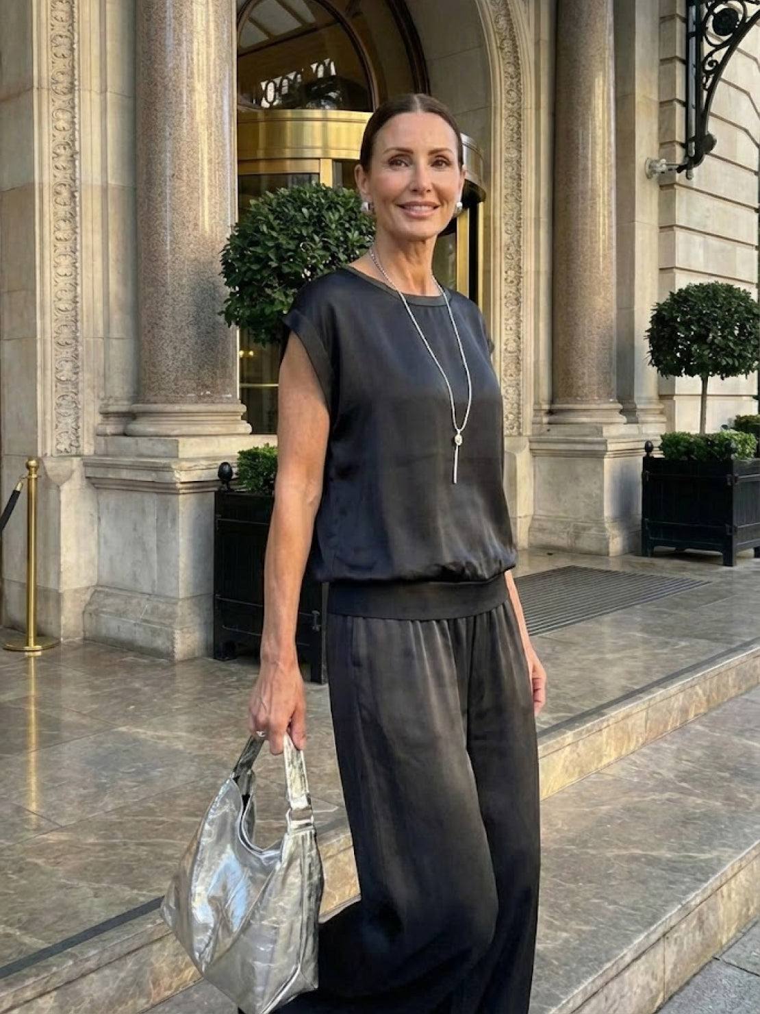 - This satin set moves with you - The fabric flows as you walk, giving you that luxury feel while letting you move freely all day.